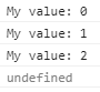 console.log("My value: " + i);