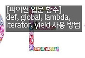[파이썬 프로그래밍 함수] def, global, lambda, iterator, yield @ 사용 방법