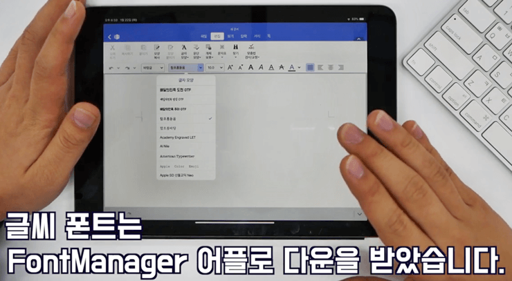 그리고 글씨체는 인터넷으로 아이패드에 다운받은 폰트를 그대로 사용할 수 있습니다.