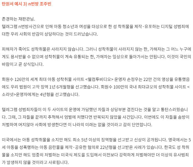 탄원서 예시 3) n번방 조주빈