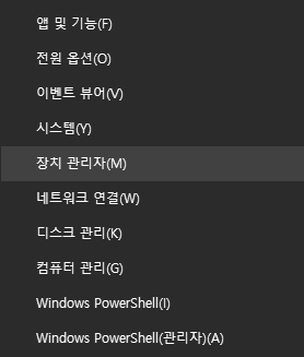 단계 1 : Windows 시작 버튼을 오른쪽 클릭하고, 메뉴에서 "장치 관리자"를 선택합니다.
