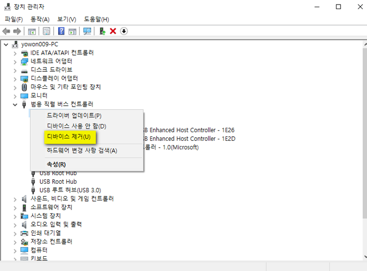 4. USB 컨트롤러 다시 설치한다