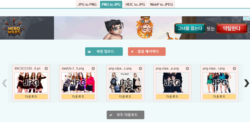 변환이 되고 난 후에 모두 다운로드 클릭해 주세요.