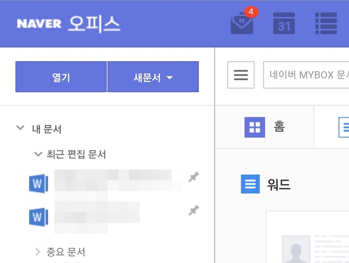 네이버 로그인하고 네이버 오피스 들어가면 위와 같은 화면이 나옵니다.