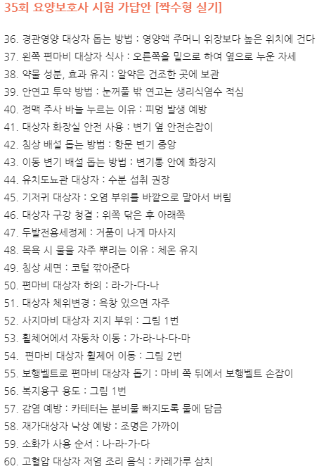 여기까지 35회 요양보호사 시험 중 짝수형 1교시 실기 가답안입니다. 확인하셨을 때 무조건 합격이시길 바랍니다.