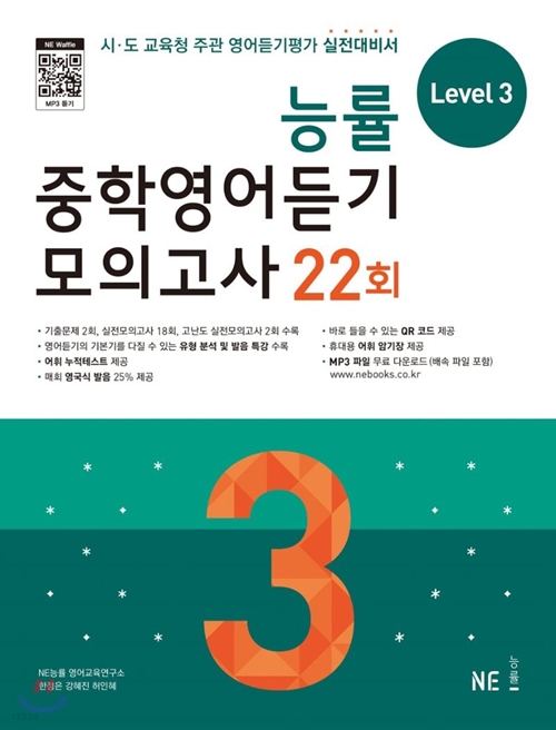 최근 시도 교육청에서 주관하는 영어 듣기 평가에 출제되는 모든 유형을 정리하고 각 유형별로 간단한 정리가 되어있어 능률 중학영어듣기 모의고사 22회 level 3 답지 보는 건 편합니다. 최신 기출문제를 풀어보고 실전 모의 고사도 18회 정도 수록되어 있습니다.