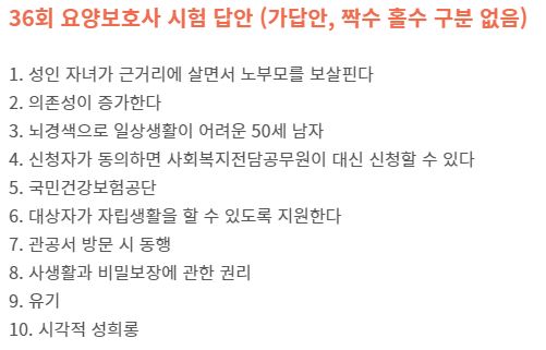 36회 요양보호사 시험 답안 (가답안, 짝수 홀수 구분 없음)