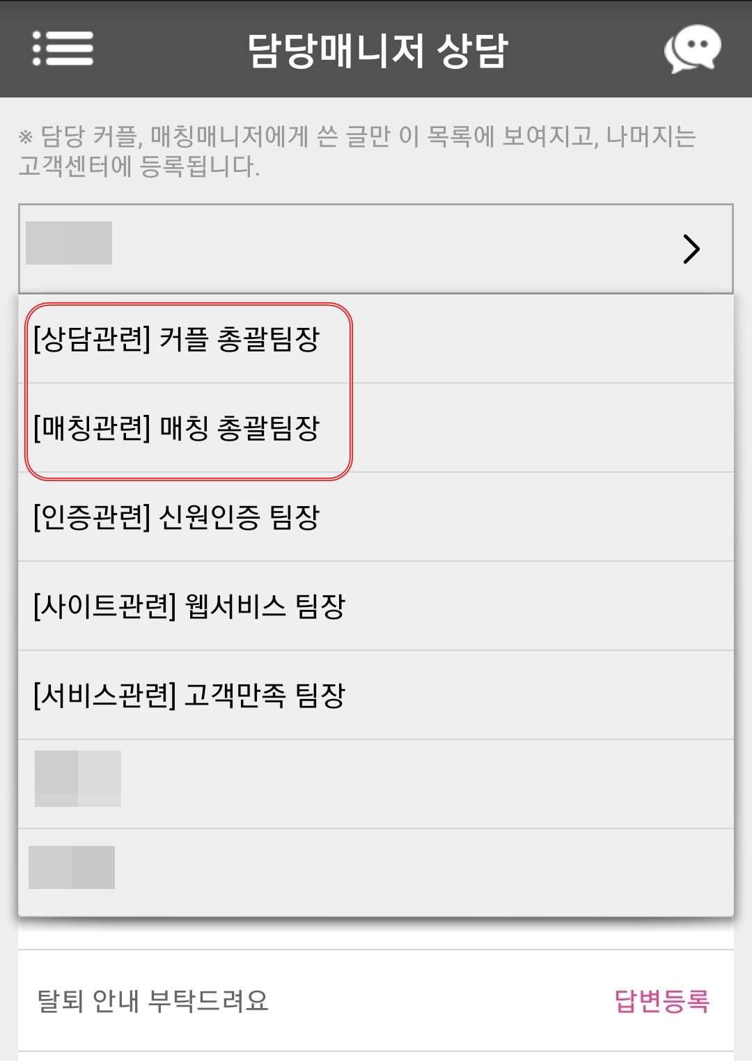 - 탈퇴 의사는 담당 매니저, 커플 총괄팀장 양쪽에 밝혀라