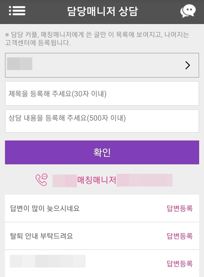 그래도 가연 탈퇴 시기가 늦어지자 가연 커플 총괄팀장에게 상담 관련 글을 별도로 남겼습니다.