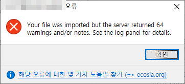 "your file was imported but the server returned 64 warnings and/or notes" 이거 해결 방법입니다.