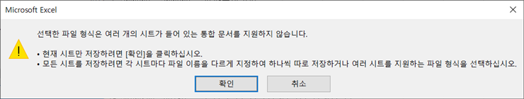 excel 파일을 csv로 변환하면 위처럼 경고 메시지가 뜨는데 확인 누르세요.