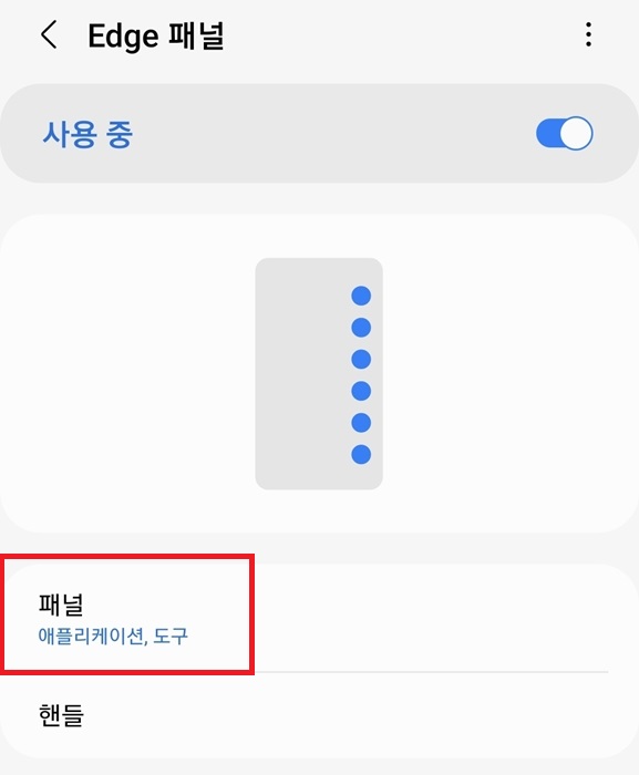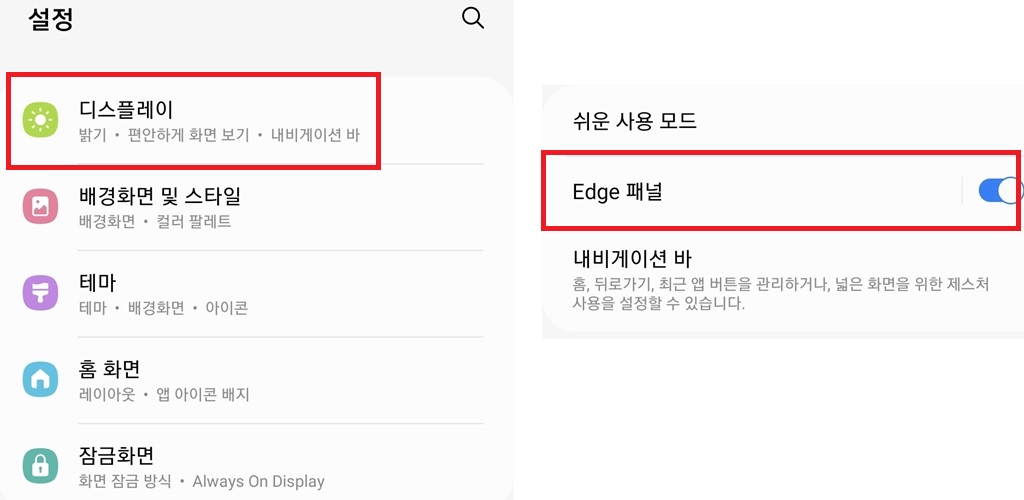 안드로이드 설정 앱을 누르고 디스플레이로 들어가 Edge 패널을 활성화합니다.