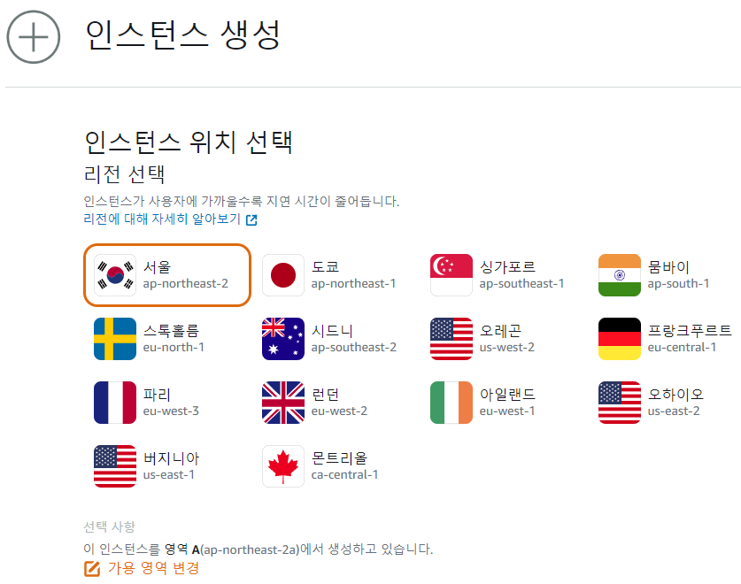 인스턴스 지역을 선택합니다.