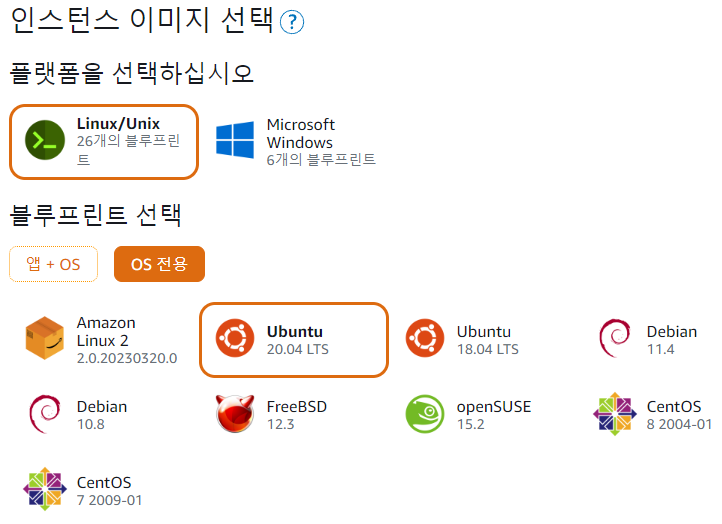 인스턴스 운영체제를 선택합니다.