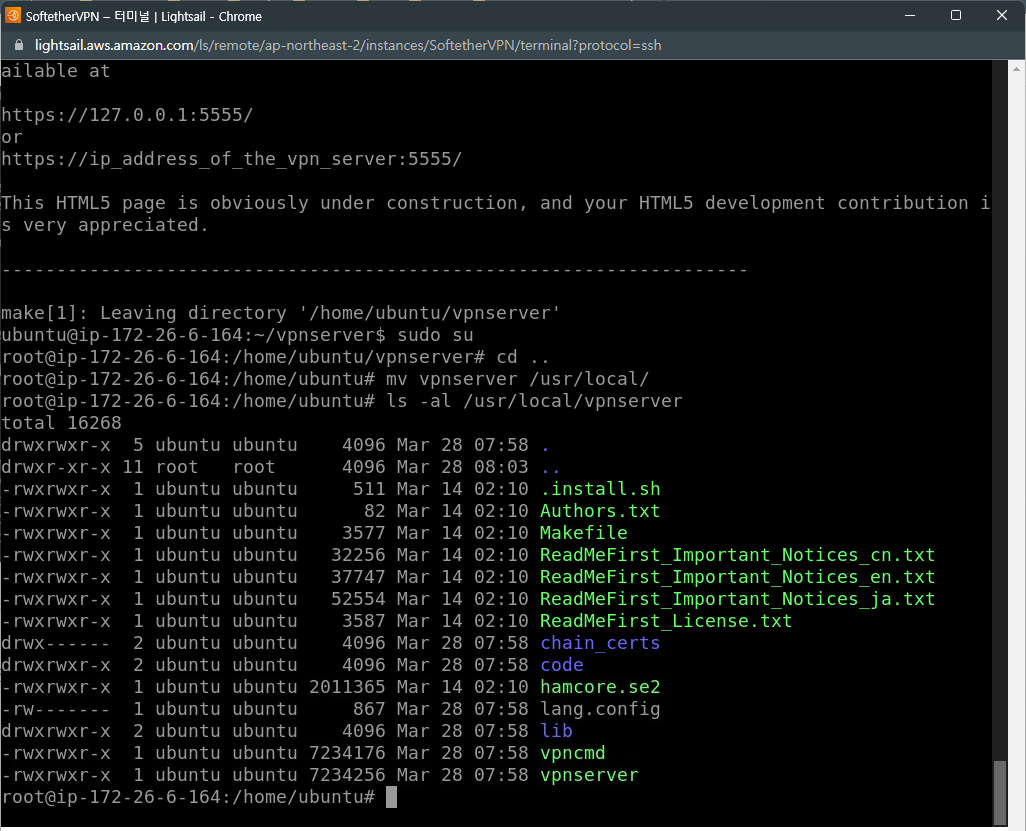 2. Lightsail에 Softether VPN Server 설치하기