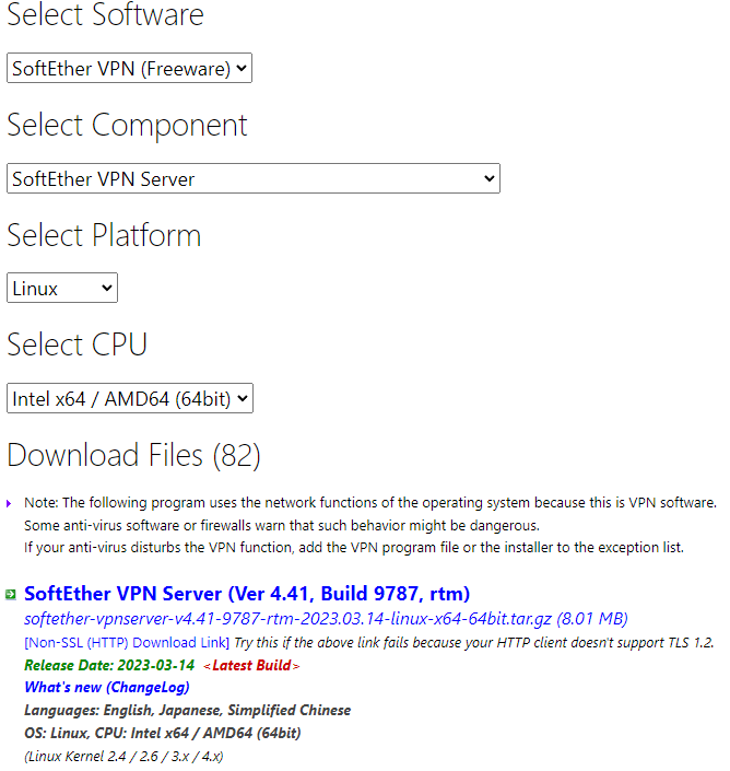 tar zxvf softether-vpnserver-v4.41-9787-rtm-2023.03.14-linux-x64-64bit.tar.gz