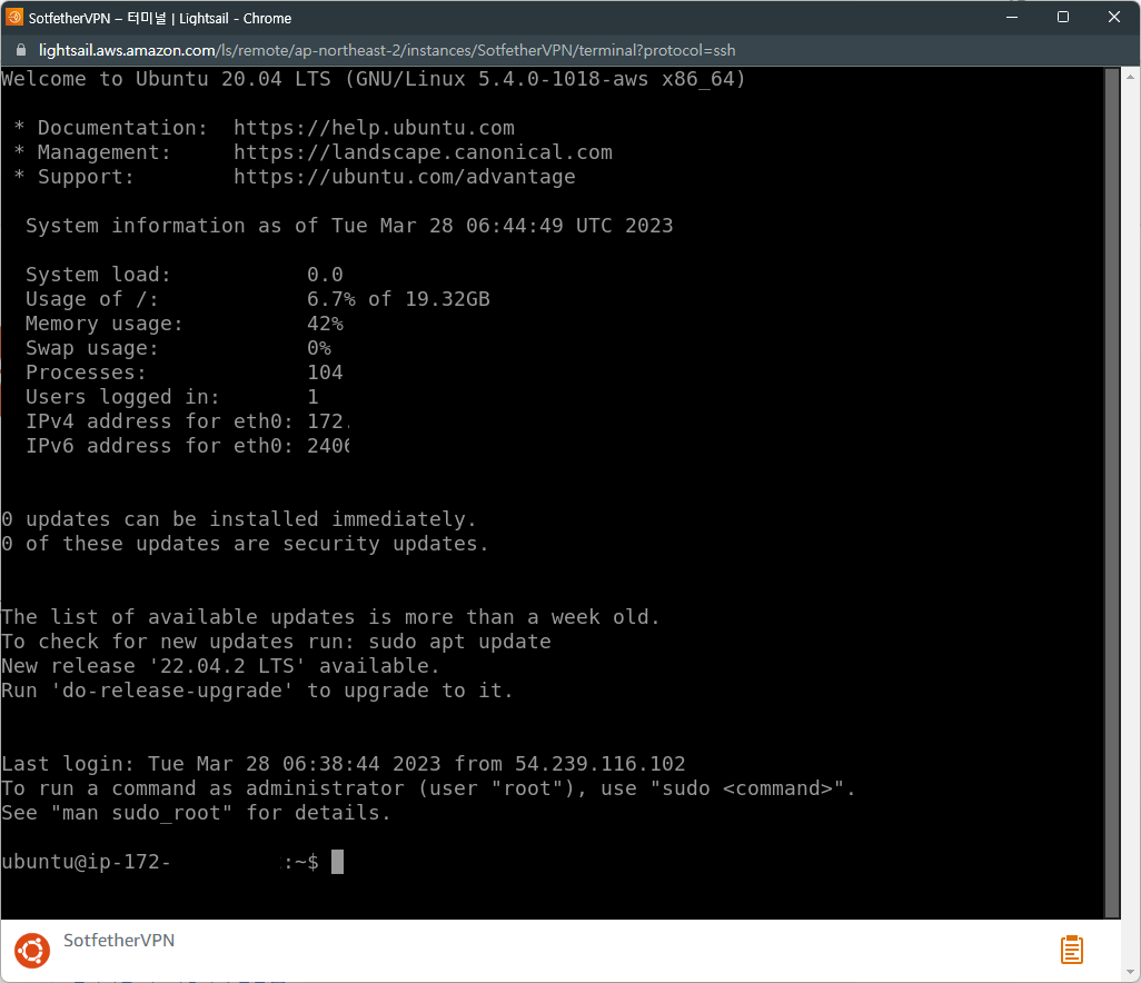 Lightsail은 실물이 없는 가상서버입니다. 따라서 온라인 상태로 서버에 접속하여 Softether VPN Server를 설치하고 설정해야 합니다.