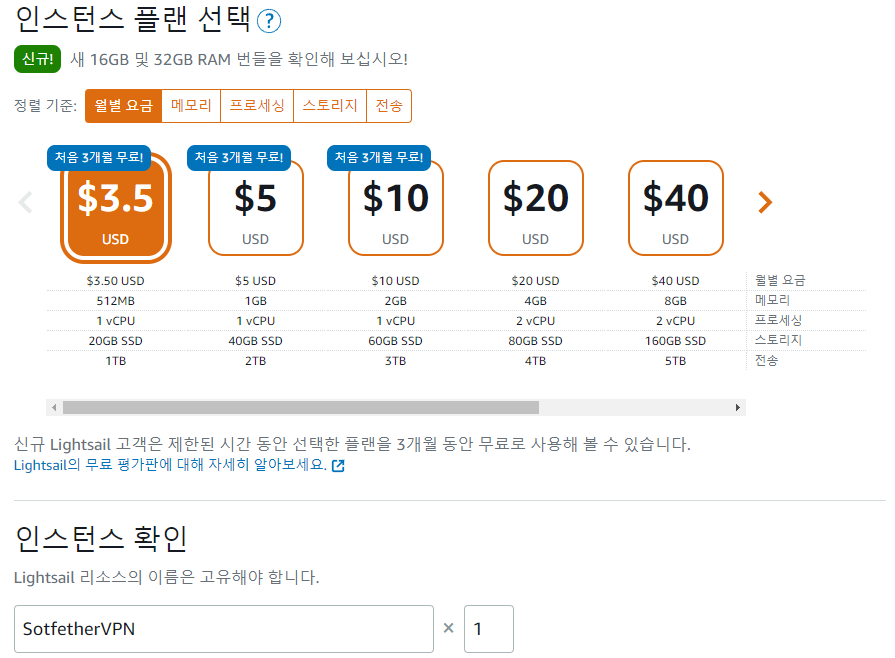인스턴스 사양에 따라 다양한 플랜이 있지만, 이용자와 예상 트래픽에 따라 플랜을 선택하면 됩니다.