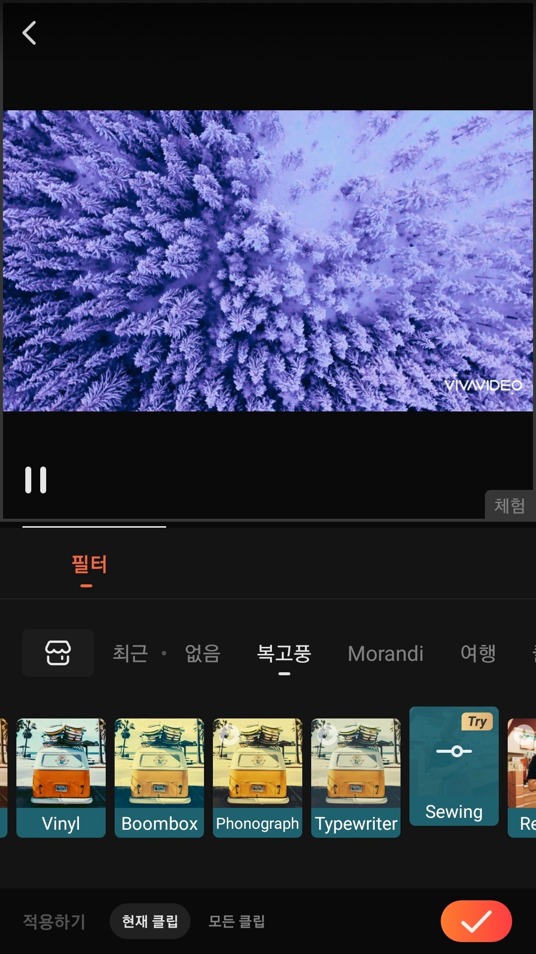 동영상 편집 어플이라면 없어선 안 되는 기능이죠! 필터 기능!