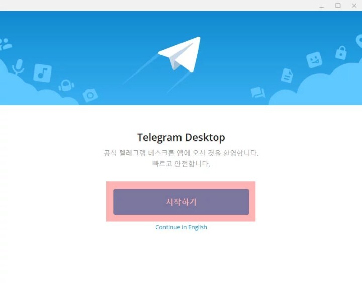 9. 한글로 시작하기 버튼으로 바뀌면 ‘시작하기’ 버튼 클릭