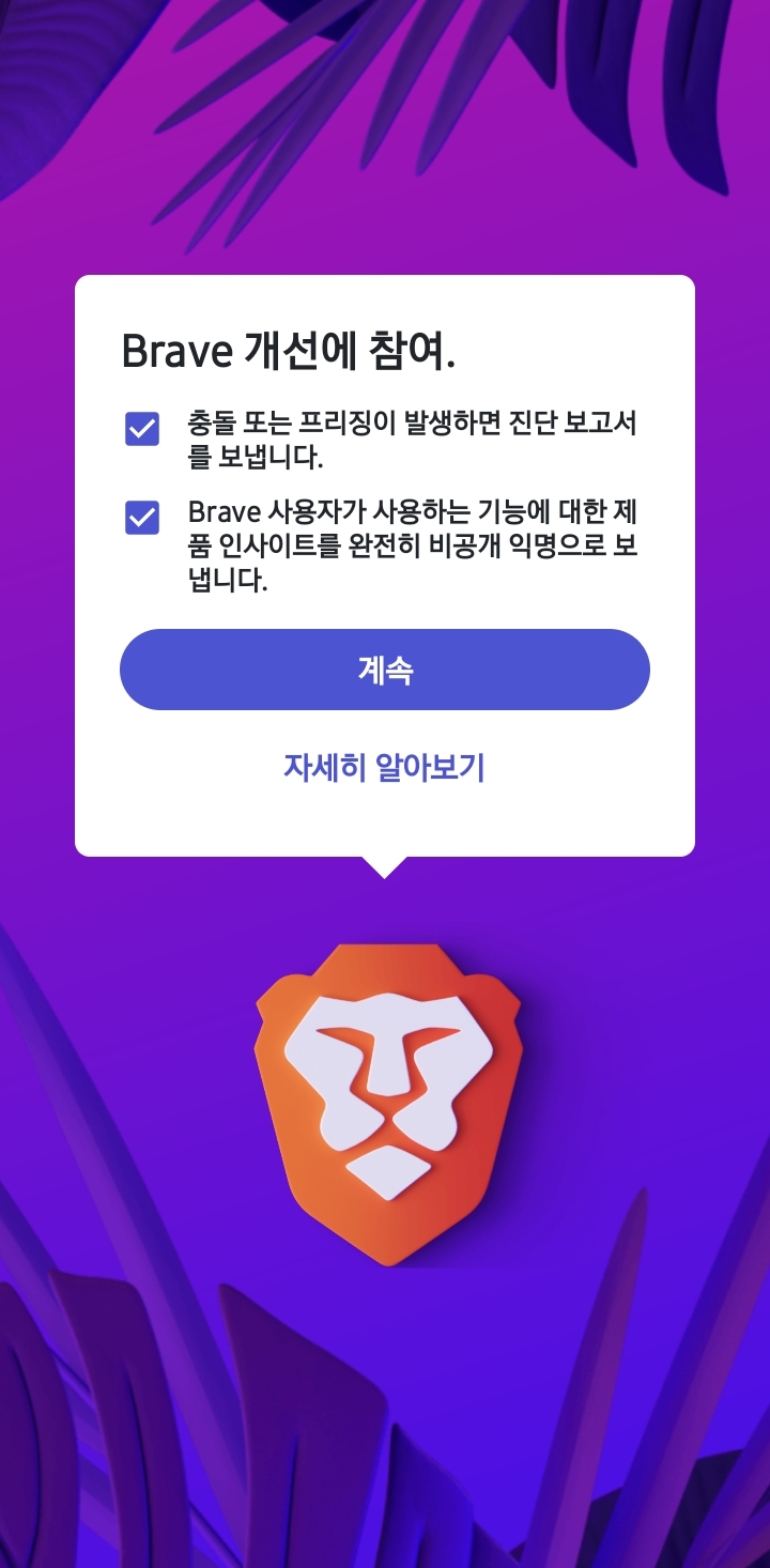 브레이브 브라우저 다운로드 하시고 설치를 진행해주세요.