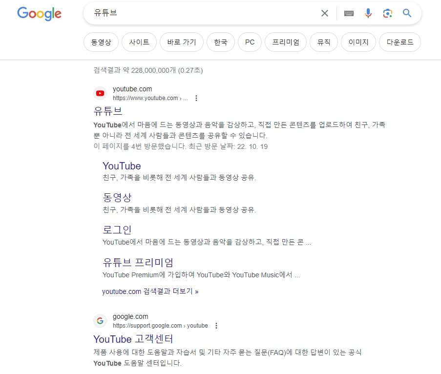 그러면 이렇게 바로 사이트로 이동이 되는데요. 유튜브를 클릭해주세요.