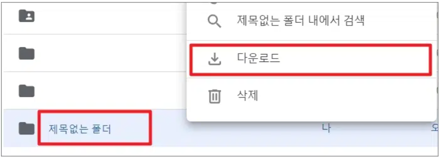 새 폴더에서 마우스 우클릭을 한 다음 [다운로드]를 선택하시면 완료됩니다.