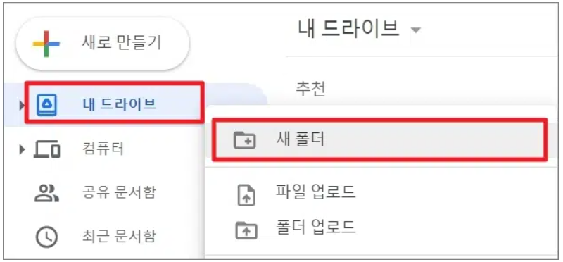 1단계) 구글 드라이브 접속 후 새 폴더 생성하기