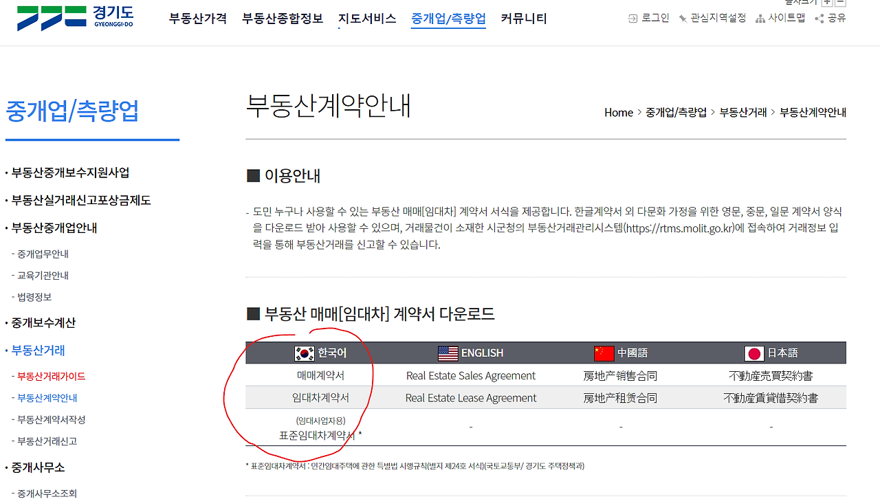 카테고리 없음 부동산 매매계약서 무료 다운로드 방법 (경기도청 제공) by vicddory 2024. 5. 31. 부동산 매매 계약서 직접 작성 시 온라인에는 많은 양식들이 있지만, 경기도청에서 운영하는 제공하는 양식이라 믿을 수 있는 부동산 표준매매 계약서 양식을 첨부한다. 이 양식은 경기도에서 운영하는 경기부동산포털에서 제공하는 양식이며, 아래 링크를 통해 접속가능하다. 위 링크에 접속하여 한국어로 표시된 매매계약서를 클릭하면 다운가능하다.(아래 그림 참조) 위 사이트에서는 한국어뿐만 아니라 영어, 중국어, 일본어의 부동산 계약서 다운로드가 가능하다. 공유하기 게시글 관리 코딩 기록 저작자표시 비영리 변경금지 (새창열림)
