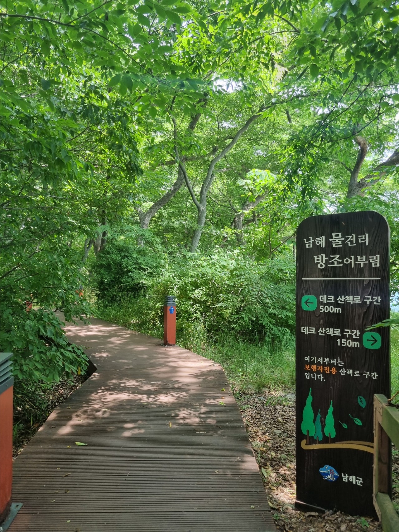 바람이 살랑살랑거리고 나무냄새 풀냄새 새소리 들으면서 산책하기에 좋은 남해 물건리 방조어부림.