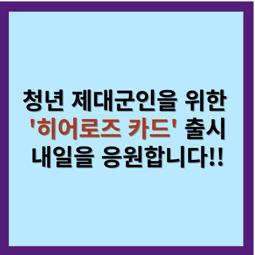청년 제대군인들을 위한 히어로즈 카드는 경제적 부담을 덜어주고, 사회 적응과 자기 계발에 큰 도움을 줄 것입니다. 오는 7월 16일 출시되는 히어로즈 카드를 통해 더 나은 미래를 준비해 보세요. 자세한 정보는 보훈부와 각 카드사의 홈페이지에서 확인할 수 있습니다.