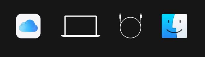 컴퓨터가 없으면 친구에게서 빌리거나 Apple Store 또는 Apple 공인 서비스 제공업체를 방문하세요. macOS Catalina를 사용하는 경우 Finder로 이 과정을 진행하며 macOS Mojave 또는 이전 버전의 macOS를 사용하거나, Windows 컴퓨터를 사용하는 경우에는 iTunes를 사용합니다. 기기를 켜주세요.