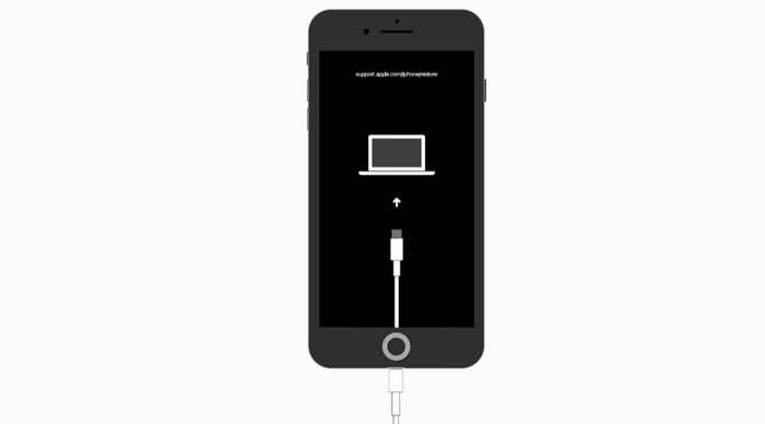 홈 버튼을 누른 상태에서 기기를 컴퓨터에 연결하세요. 복구 모드 화면이 나타날 때까지 홈 버튼을 계속 누르고 있어야 합니다. 시간이 다소 걸릴 수 있습니다.