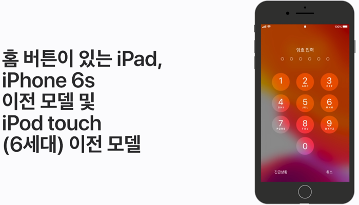홈 버튼이 있는 iPad, iPhone 6s 이전 모델, iPod touch (6세대) 이전 모델