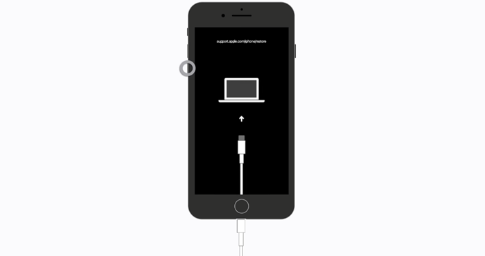 홈 버튼을 누른 상태에서 기기를 컴퓨터에 연결하세요. 복구 모드 화면이 나타날 때까지 홈 버튼을 계속 누르고 있어야 합니다. 시간이 다소 걸릴 수 있습니다.