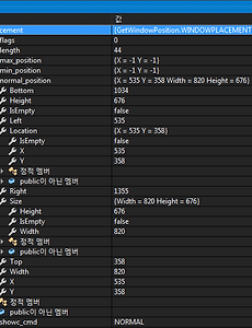 C# 윈도우 크기, 위치 확인 (GetWindowPlacement, FindWindow)