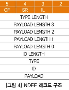 NFC 전송1 NFC 전송 데이터 교환 포맷, NDEF 레코드 구조 NFC 전송 데이터 교환 포맷, NDEF 레코드 구조 NFC 데이터 교환 포맷NFC 포럼은 태그 혹은 NFC 장치 사이의 데이터 전송 시 상호 호환성을 가능하게 NDEF 데이터 공통 포맷을 정의하였습니다. NDEF는 URL, 카드, 그리고 NFC 관련 데이터 타입을 전달할 수 있는 작고 컴팩트한 이진 포맷입니다. NDEF는 페이로드를 포함하는 일련의 레코드들로 구성된 메시지로 교환됩니다. . 페이로드 컨텐츠는 URL, MIME 미디어, 혹은 NFC 관련 데이터 타입이 될 수 있음.. NFC 관련 데이터 타입의 경우 - 페이로드 컨텐츠는 NFC RTD(Record Type Definition)에 정의됨.. 레코드 내의 데이터 타입과 레코드 크기는 페이로드가 붙여진 헤더에 포함.. 페이로드의 타입을 식별하기.. 2017. 4. 9. 이전 1 다음